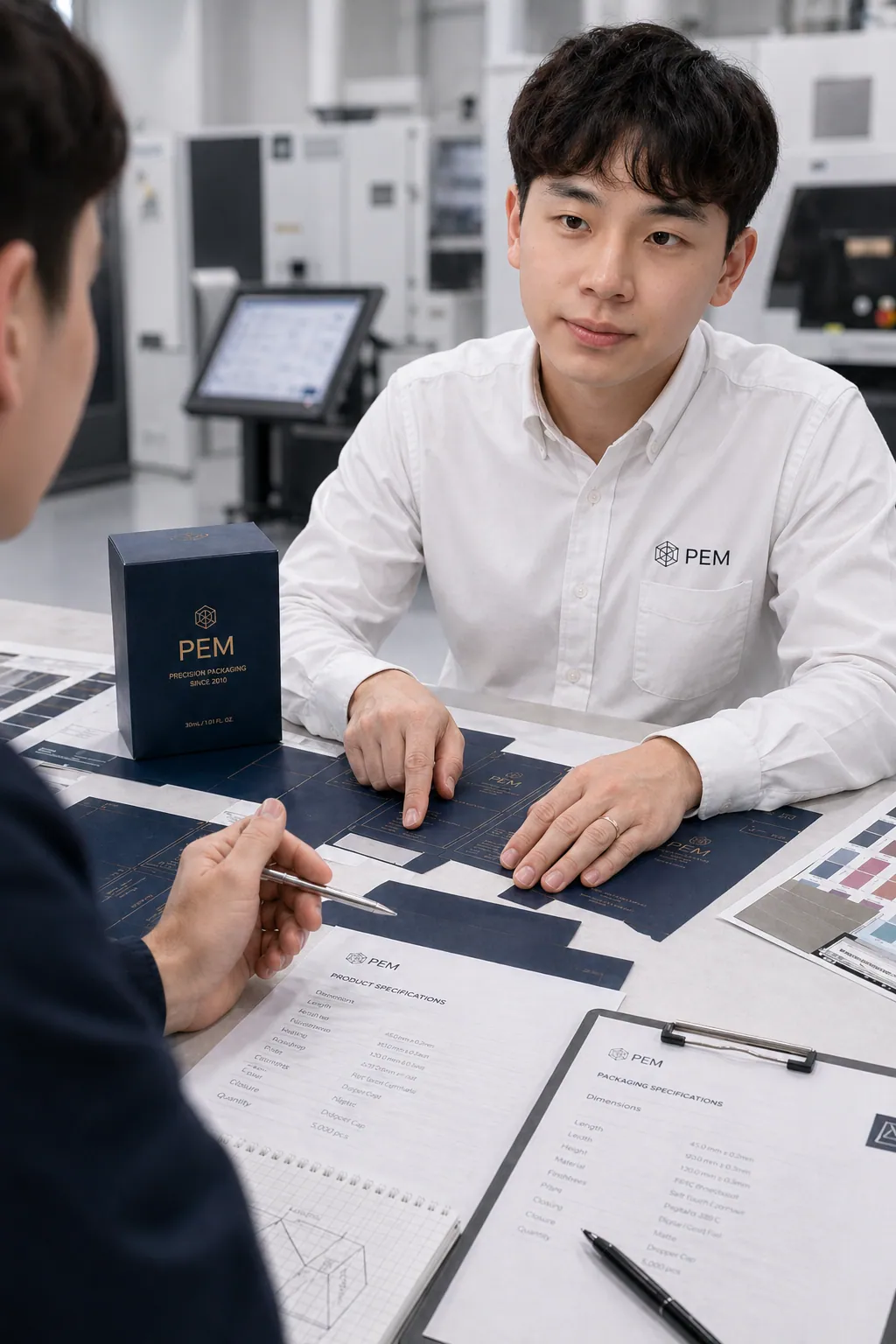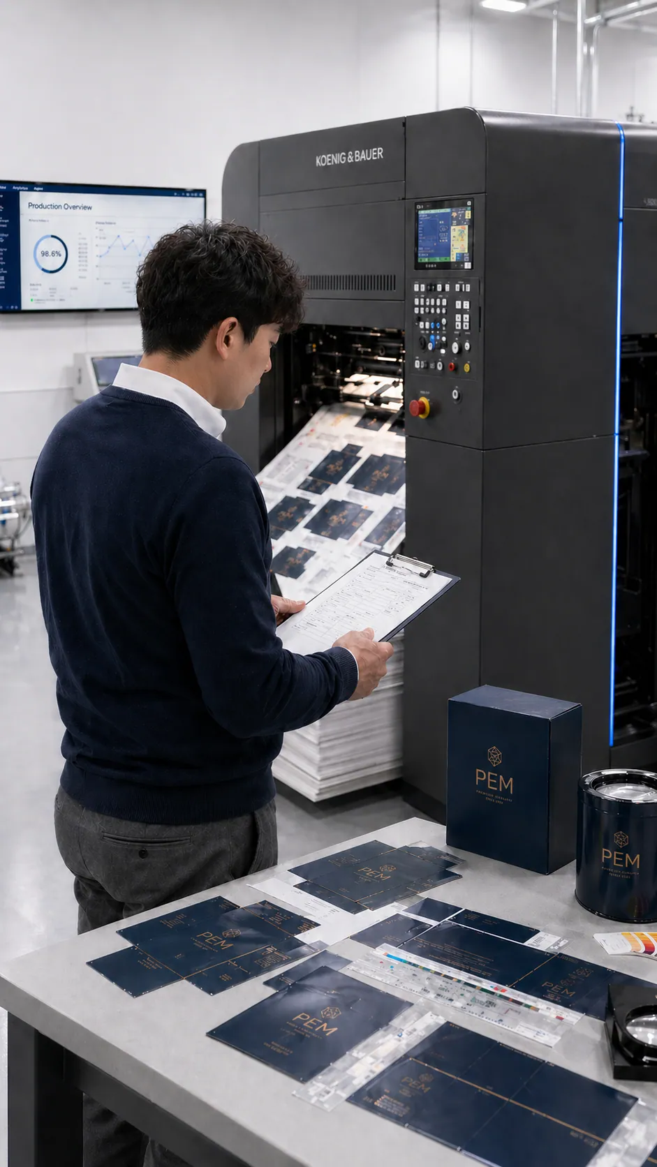 생산관리자가 인쇄·후가공 현장을 확인합니다.